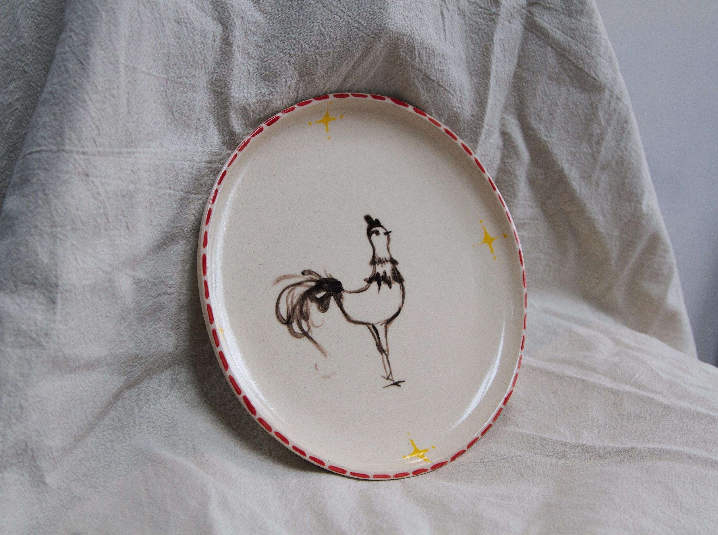 Handmade Ceramic Chicken Plate: Rustic Farmhouse Kitchen Decor